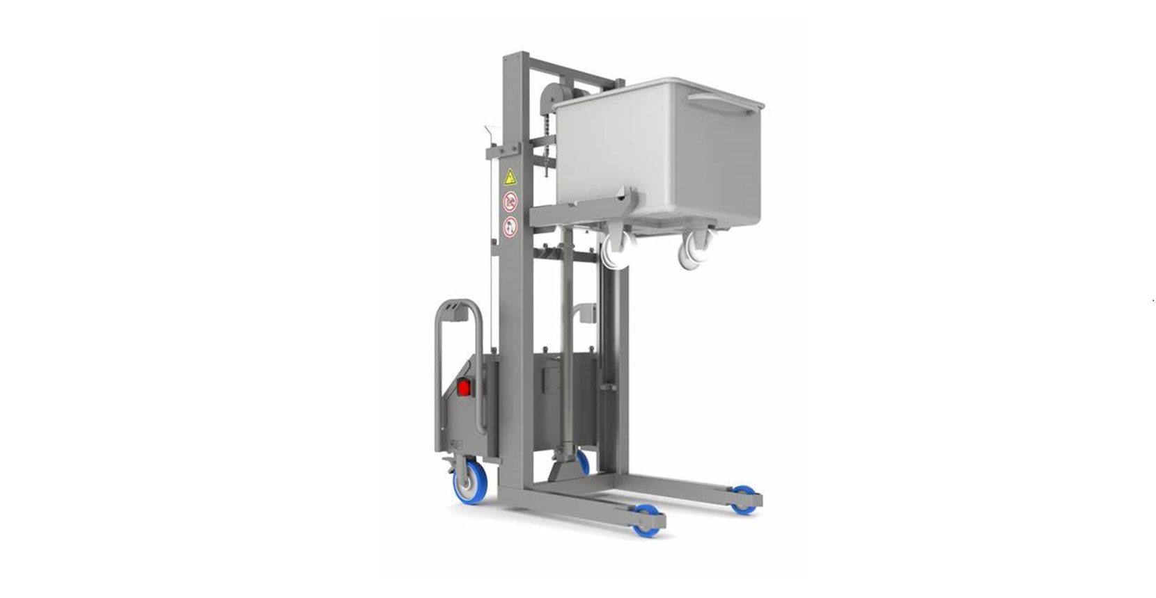 Backsaver SNT提升/堆垛機專(zhuān)為提升標準DIN9797 200或300升的肉車(chē)、手推車(chē)或手推車(chē)而設計,這些肉車(chē)、推車(chē)或手推車(chē)必須放置在貨架上,以便在長(cháng)時(shí)間的冷卻、酸洗、硬化或熟化過(guò)程中儲存。