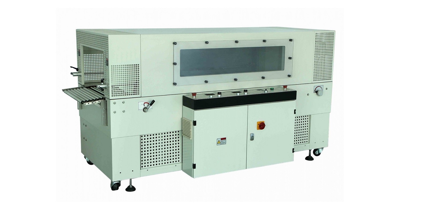 T-Series shrink tunnel produces consistent uniform film shrink using heavy-duty, variable speed blowers and heating elements. This combination creates a recirculating air system that forces air to all package surfaces. Independent control systems regulate temperature, air velocity and conveyor speeds. The efficient heating system on each machine reduces the amount of electricity and the cost of operation.